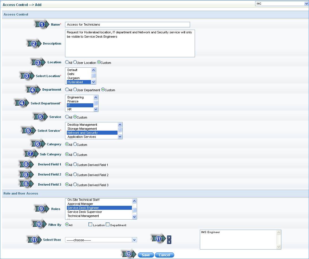 A service desk engineer can view all service desk records of the project to which he is assigned. To restrict access to the service desk records belonging to a particular department or location, a rule has to be defined in every project. This is particularly helpful in large organizations as it restricts a service desk engineer to viewing service desk records of his specialized area only.