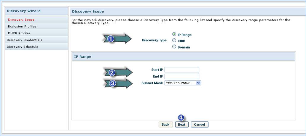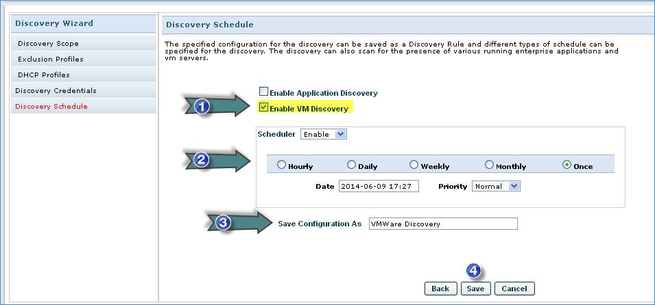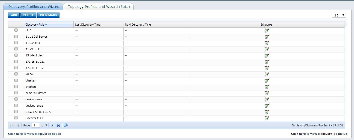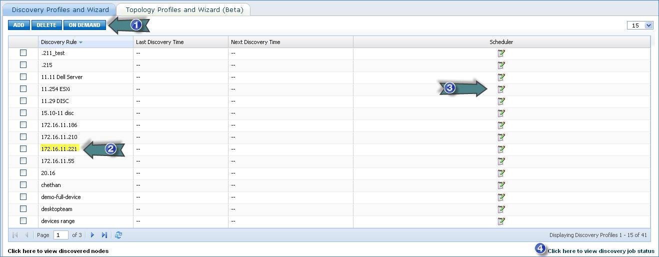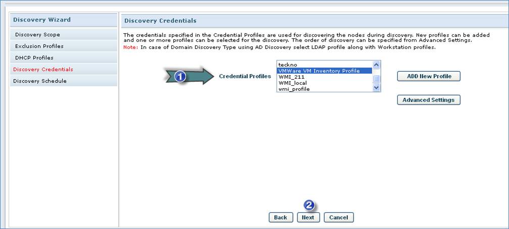 Follow the instructions given in the above screenshot to add the Discovery Profile. Once a profile is created it will be listed in the “Discovery Profiles and Wizard” page