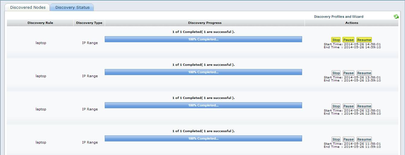 You can Stop, Pause or Resume a Discovery Rule using the buttons in the “Actions” column