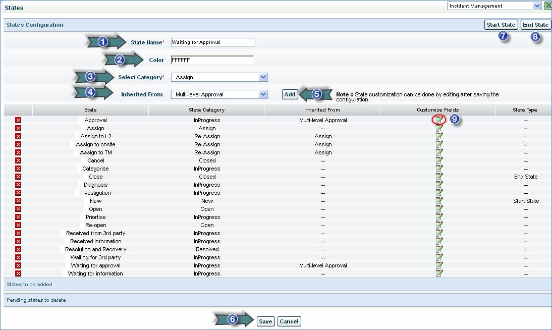8. Click “End State” if you want to select the end state. This is the state that is considered as the end state of the service desk request.